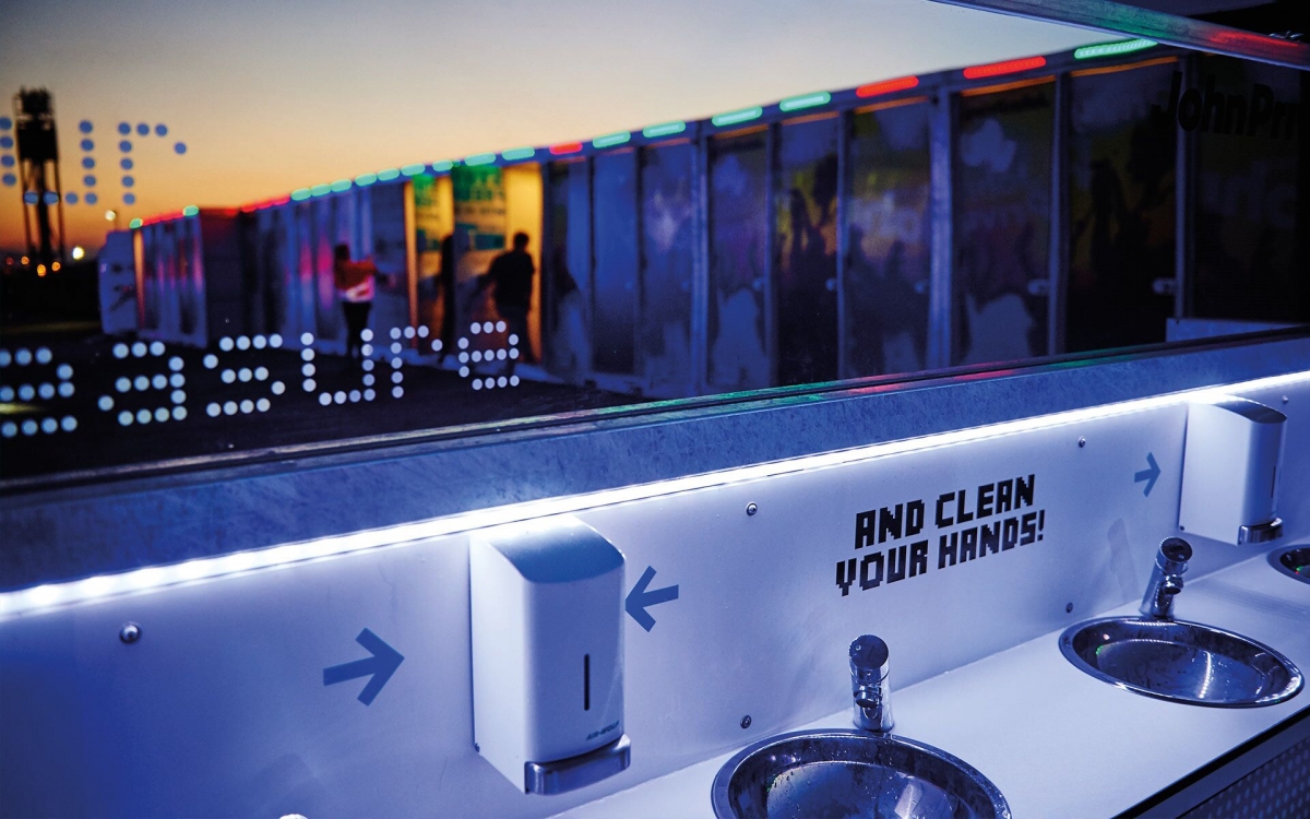 John Privy® Umyvadlo bude hvězdou zákulisí: inovativní sanitární systém nastavuje nejvyšší standardy kvality a vyniká na všech festivalech a akcích vysokou úrovní pohodlí, nejmodernější vakuovou technologií a skvělým designem. Umyvadlová jednotka nabízí celkem 8 umyvadel s vakuovou technologií. Nikdo nemusí dlouho čekat i při velkém počtu návštěvníků.