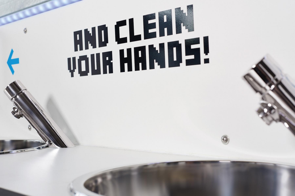 Nejen zajištění hygieny, ale i vzhled jsou důležité: na každé straně jsou čtyři umyvadla z leštěného materiálu a komfortními designovými doplňky, včetně samouzavíracích baterií a dávkovače mýdla. Díky působivému LED osvětlení budou návštěvníci festivalu doslova přitahováni. Dělící stěna je vybavena velkoformátovými zrcadly - takže uživatelé mohou rychle zkontrolovat, zda je make-up nebo účes stále na dokonalý. Umyvadlo může být volitelně vybaveno zásobníky na papírové ručníky včetně odpadkového koše. V závislosti na počtu návštěvníků lze modulární systém podle potřeby vaší akce rozšířit.